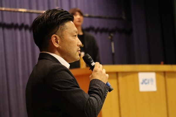 まずはじめに会員拡大委員会 委員長 山田翔太朗君が三木青年会議所でこれまで行ってきた活動の簡単な説明を行い、その後古市先生が登壇されました。