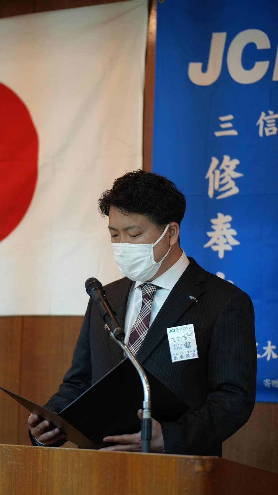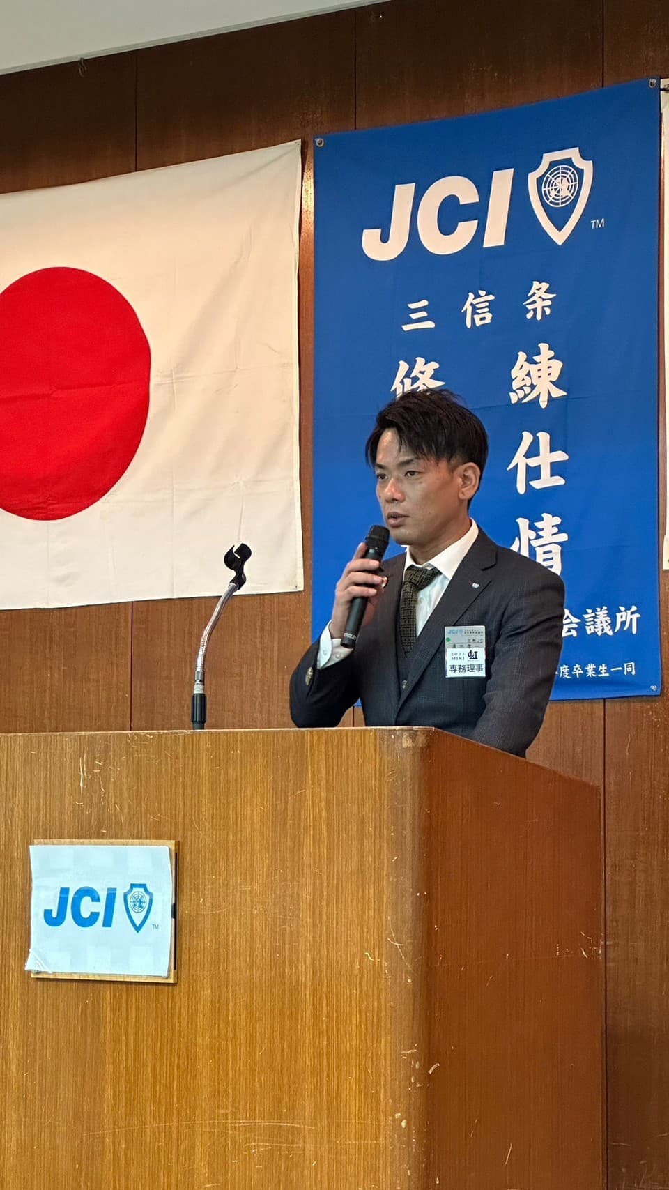 セレモニーはJCIクリードを五本上真大君、JCIミッション・JCIビジョンを福代寛君、JC宣言文朗読並びに綱領唱和を柳田啓君が行いました。