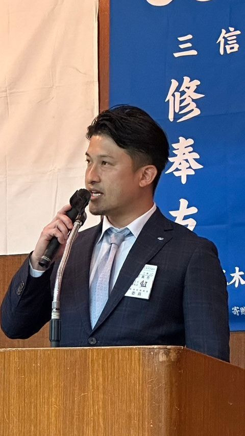 3分間スピーチでは「働くとは」をテーマに粂田真吾君、内橋正弥君がスピーチを行いました。