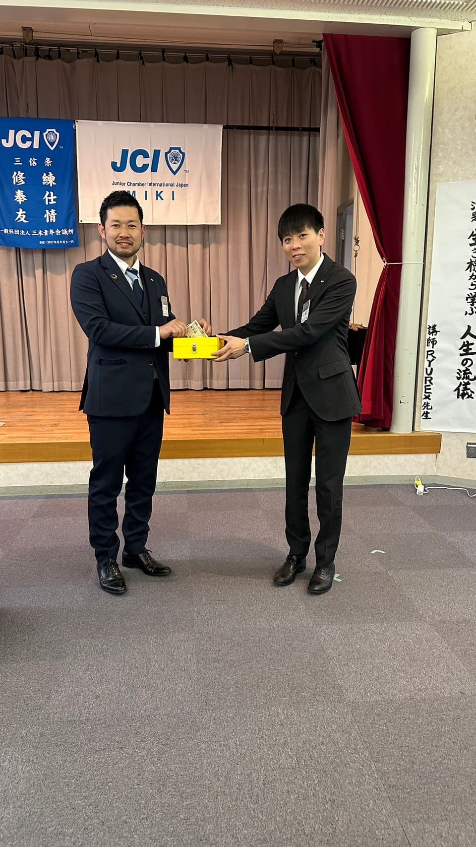 セレモニーではJCIクリードを岡島拓哉君、JCIミッション・JCIビジョンを川野拓也君、JC宣言文朗読並びに綱領唱和を小山紘史君が行いました。
