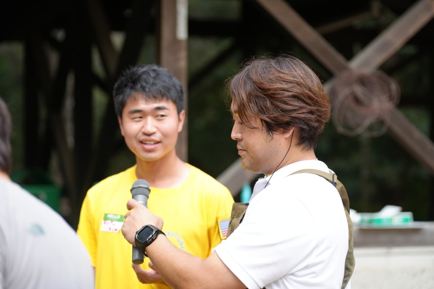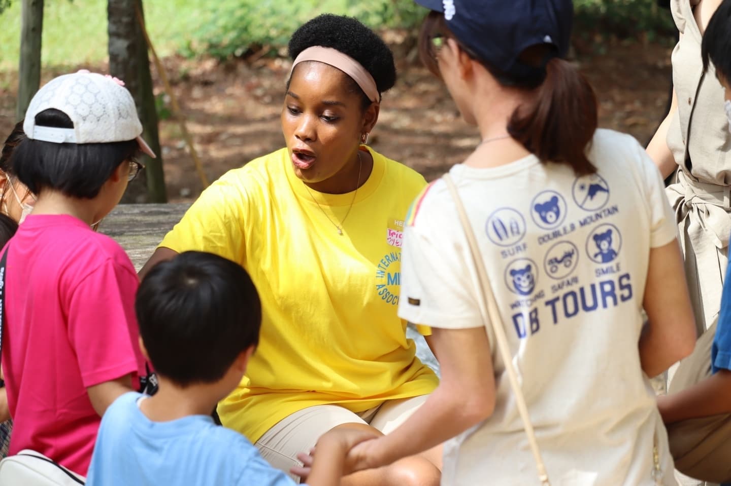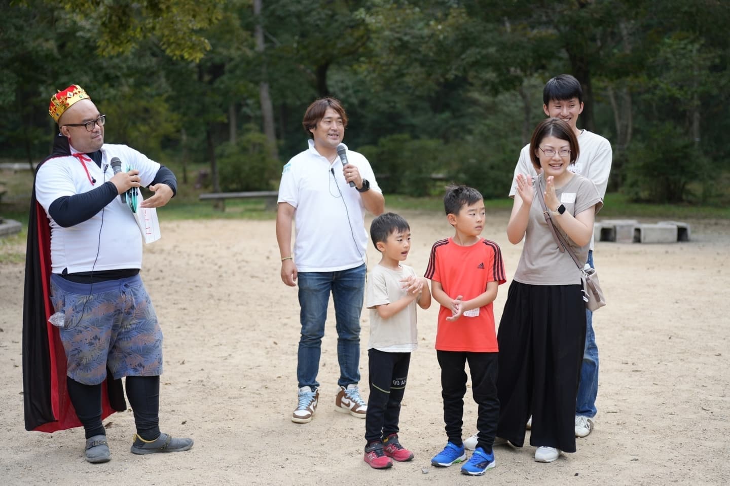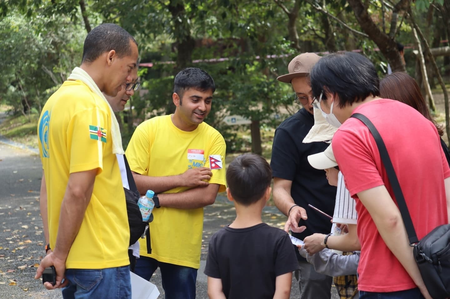 次に「お宝発見!アトラクション」が行われました。参加者には、外国人協力者の出身国にちなんだ複数のクイズが出題され、北播磨地域特産の豪華食材を賭けてタイムアタック形式でクイズに挑戦していただきました。問題の難易度は高く、その国の外国人協力者とコミュニケーションをとらなければ答えには至りにくいものとなっています。外国人協力者は三木ホースランドパークのデイキャンプエリア及びキャンプエリアに点在しているので、参加者は会場を歩き回り、当該の国の外国人を探し、コミュニケーションをとることで答えを導きました。このアトラクションを通して、外国人とのコミュニケーションの敷居を下げていただくこと、様々な国の文化を知っていただくことを狙いとしました。