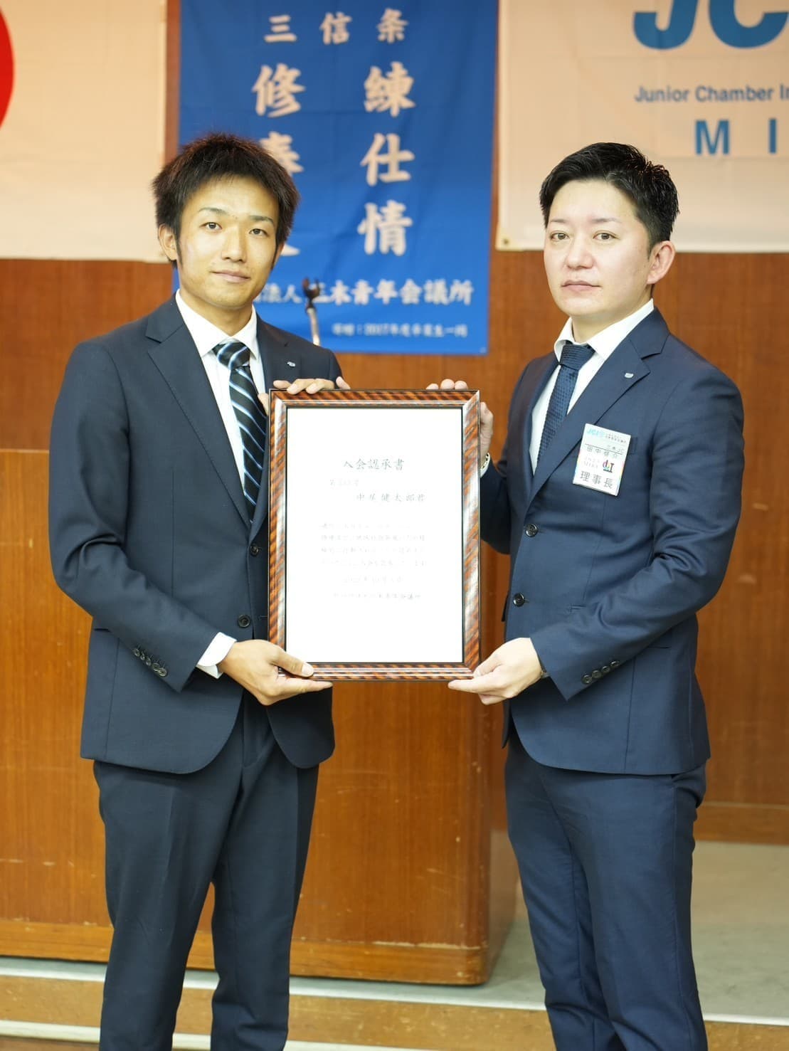 さらに10月例会では新入会員認証授与式が執り行われ、中尾健太郎君が三木青年会議所のメンバーに加わりました。これから一緒に活動できることを楽しみにしております。