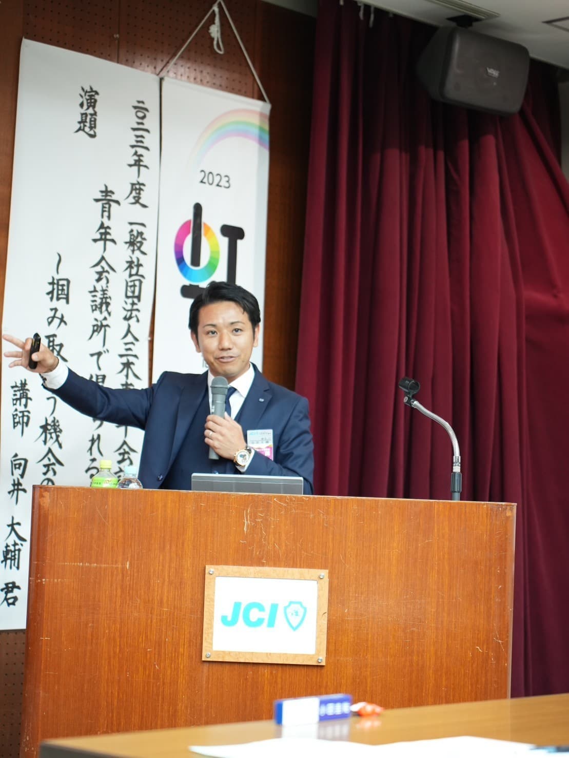その後、一般社団法人明石青年会議所の向井大輔君より、「青年会議所で得られるもの~掴み取ろう機会の提供~」というテーマでご自身のJC活動経験を踏まえた講演をしていただきました。青年会議所の運動のサイクルを理解することで、それぞれの立場での向き合い方がわかりました。