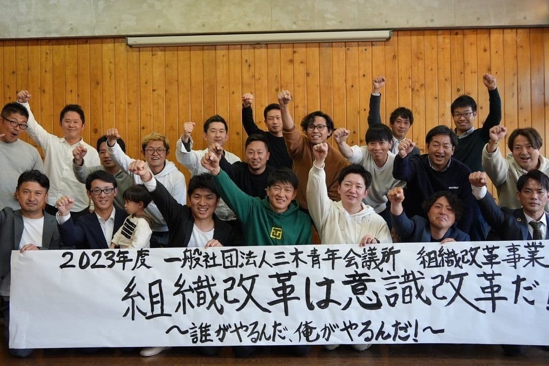 メゾン・ド・リヴァージュにて、木多委員長率いるひとづくり委員会による設営の元、(一社)三木青年会議所12月例会が開会されました。2023年度の集大成