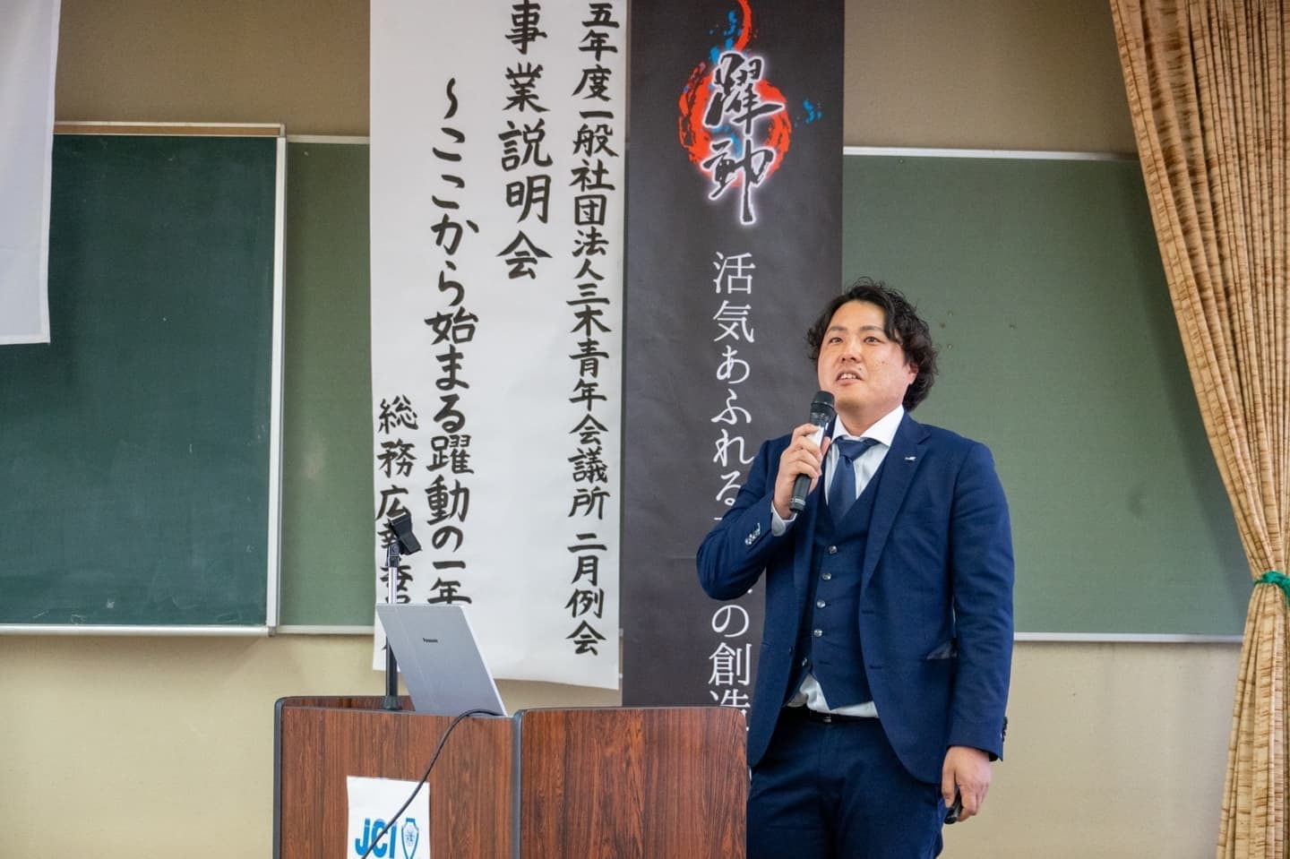2月例会は演題「事業説明会~ここから始まる躍動の一年~」とし、2025年度の活動に対する参加意欲を高めることを目的し、4名の委員長がプレゼン形式を用いて2025年度の委員会の事業の背景や目的、自らの想いを込めて構築した経緯を説明しました。