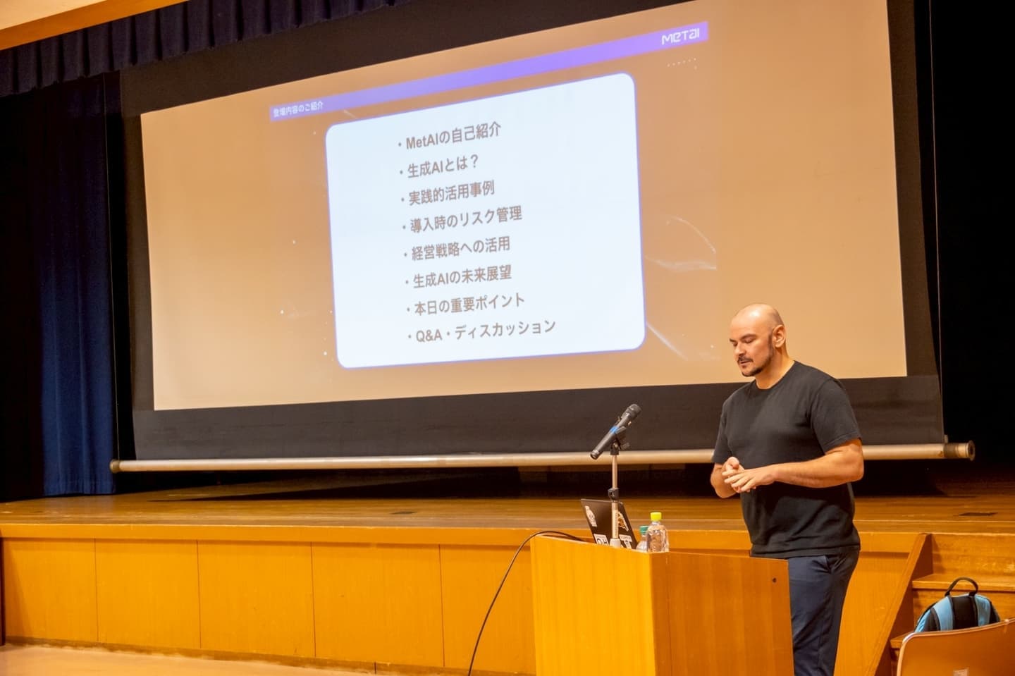 講師として合同会社MetAI代表取締役のロザノ・デビット氏をお招きし、生成AIを業務改善にどう活用すれば自身の社業に役立てられるのか、また業務に直結する具体的なイメージや、生成AIが私たちの未来にもたらす影響について、幅広くお話しいただきました。活用事例では、多様な業種の具体例をご紹介いただき、参加者全員にとって大きな学びとなったのではないでしょうか。