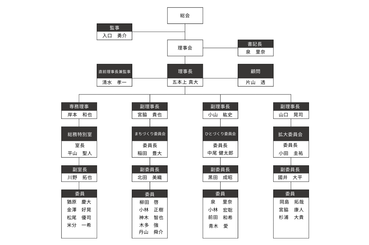 | 総務特別室 | まちづくり委員会 | ひとづくり委員会 | 拡大委員会 | ||||||||||