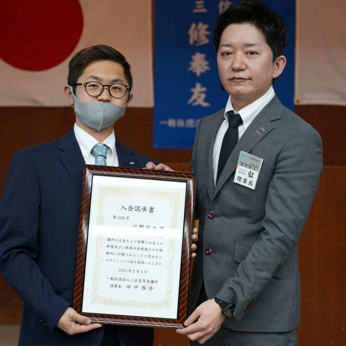 2月例会では2023年度最初の新入会員認証授与式が執り行われ、新たな会員をお迎えすることができました。川野君、ご入会おめでとうございます!