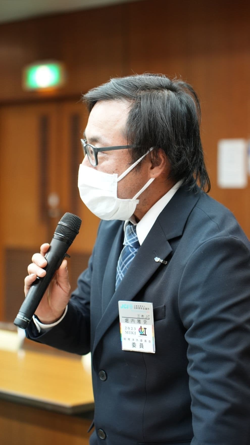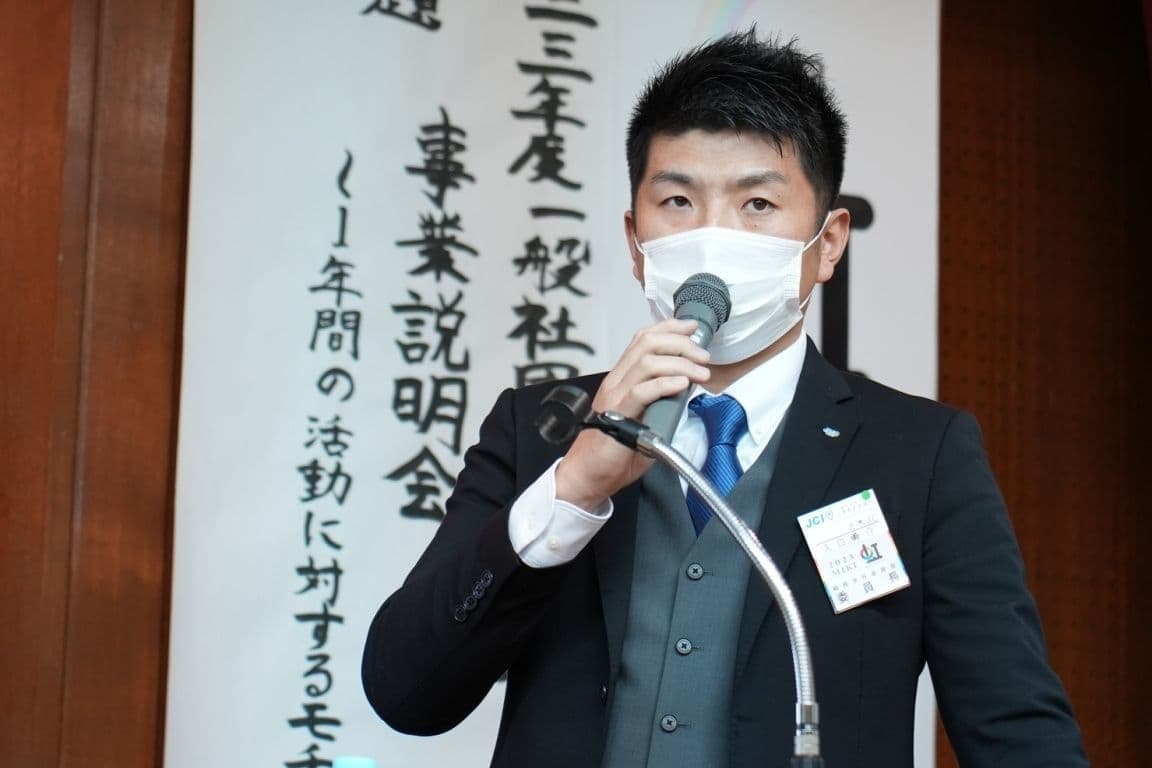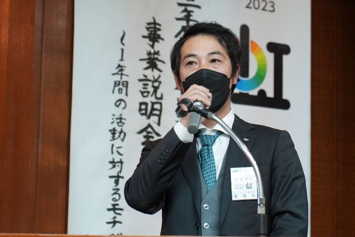 事業説明会では、「一年間の三木青年会議所活動への士気を高めること」を目的に、4人の委員長が事業内容や事業に対する想いを自らの言葉で伝え、全会員に共有しました。
