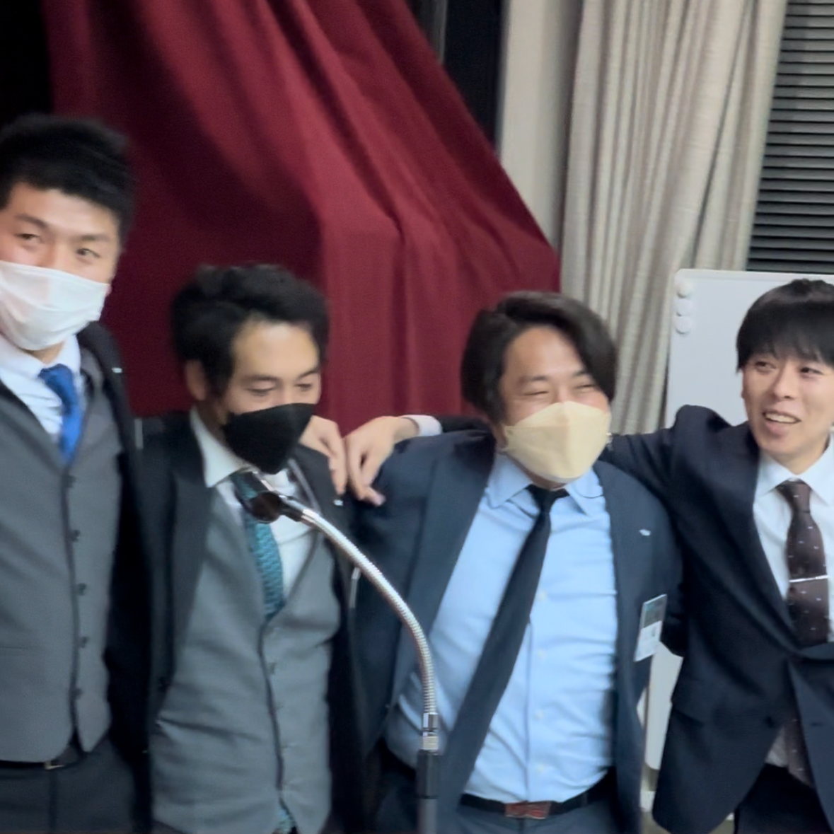 清水専務理事からの総括の後、皆で肩を組み『若い我等』を斉唱し、会場全体に一体感が生まれたところで事業説明会は終了しました。田中啓介理事長の掲げるスローガン「虹〜個性輝く次代へかけよう〜」を達成するためにも、会員一同団結し活動に取り組んで参ります。