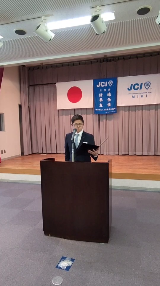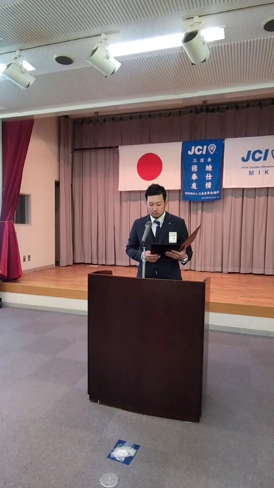 セレモニーではJCIクリードを岡島拓哉君、JCIミッション・JCIビジョンを川野拓也君、JC宣言文朗読並びに綱領唱和を小山紘史君が行いました。
