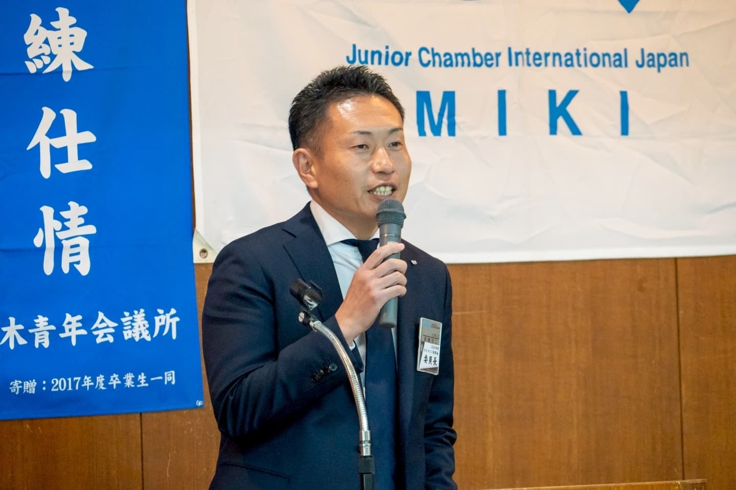 今回の例会は、卒業例会でした。卒業予定者は現役会員に希望を託すこと、現役会員はJCの価値を再認識することを目的として行われました。本年度は髙橋浩二君、清水孝一君、片山透君、田中啓介君の4名が卒業をされます。