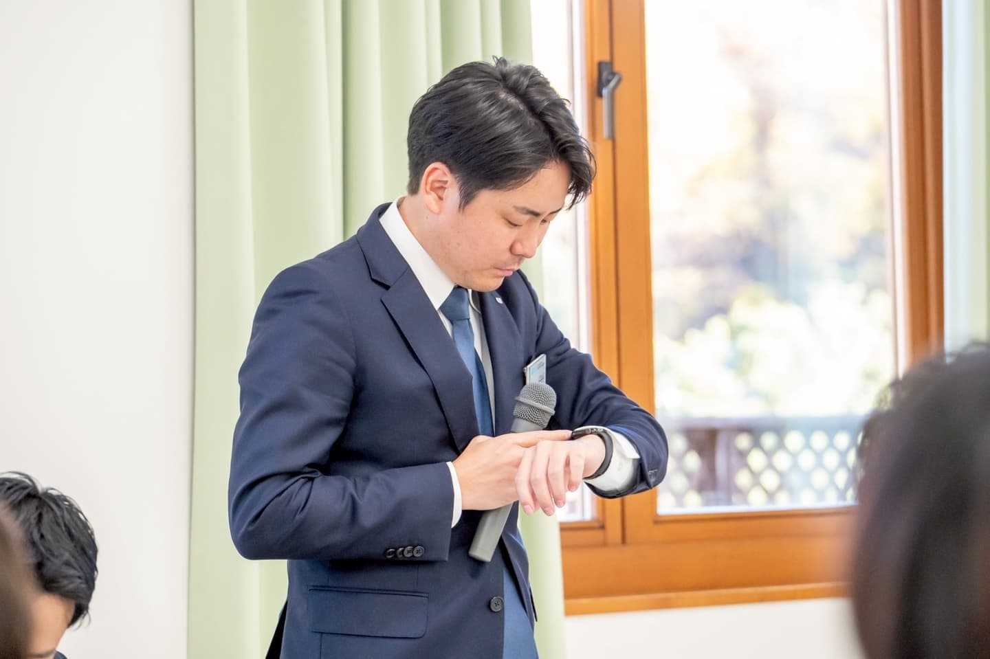 次に人から共感を得る能力を高めることを目的とし3分間スピーチを行いました。本年度のテーマはテーマ「自身の心に響いた名言・格言・書籍について」です。