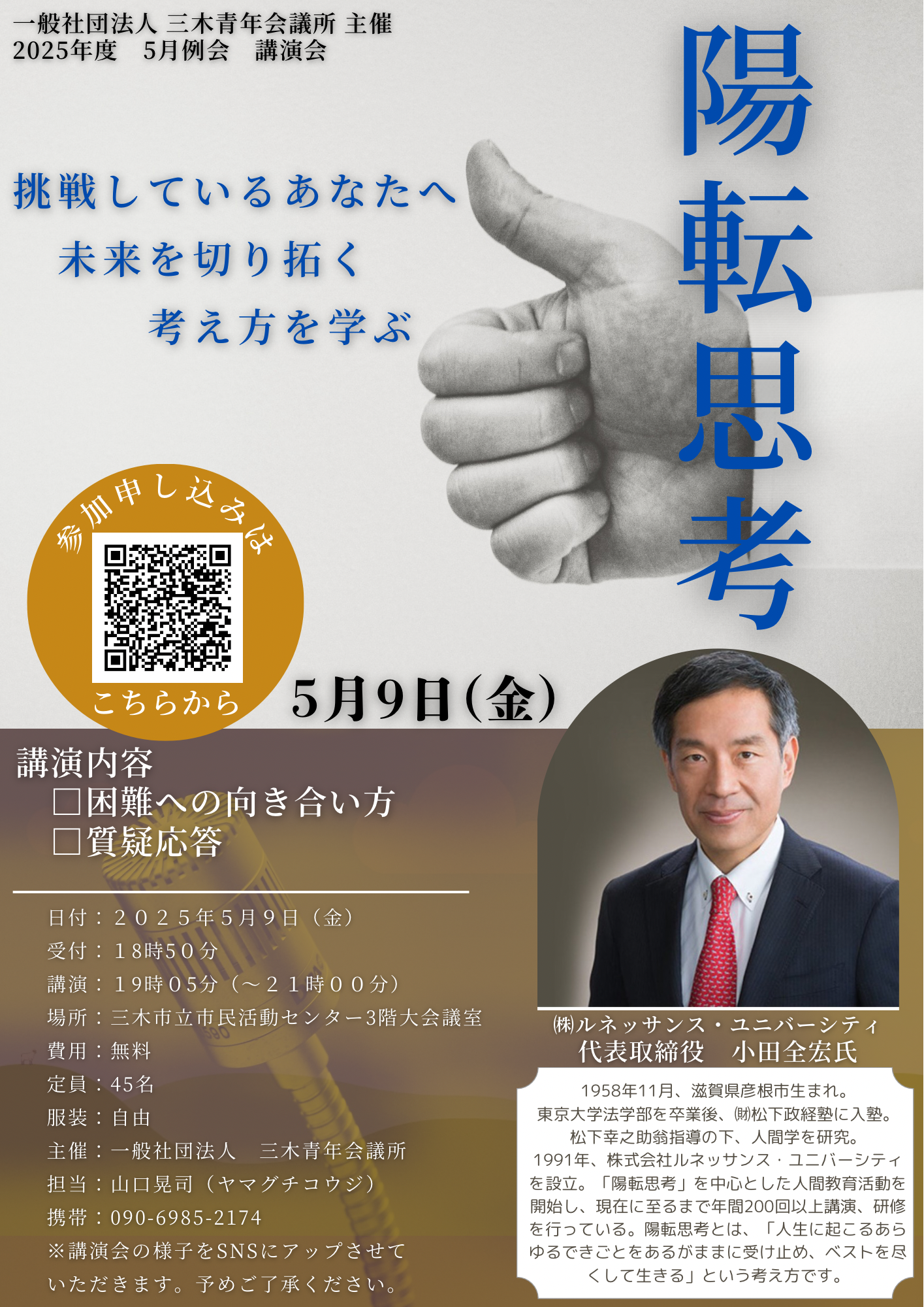 例会名称 | 5月例会 ~挑戦しているあなたへ 未来を切り拓く考え方~ |